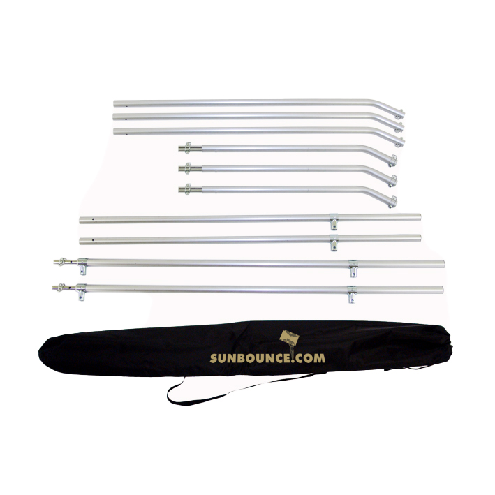 This is a patented, three-dimensional, completely collapsible frame. It is super light and extremely stable. The modular system allows you to combine every frame with the appropriate screen, making it a reflector, diffuser, or light blocker (shade). These special frames, made by hand from anodized aluminum, can be collapsed in seconds to fit into an approx. 6-8cm diameter bag. All SUNBOUNCE items have a maximum length of 135cm. Thanks to the crossbar and clamp integrated into the frame, it can be held in many different ways - comfortably by hand or by attaching it to a tripod.