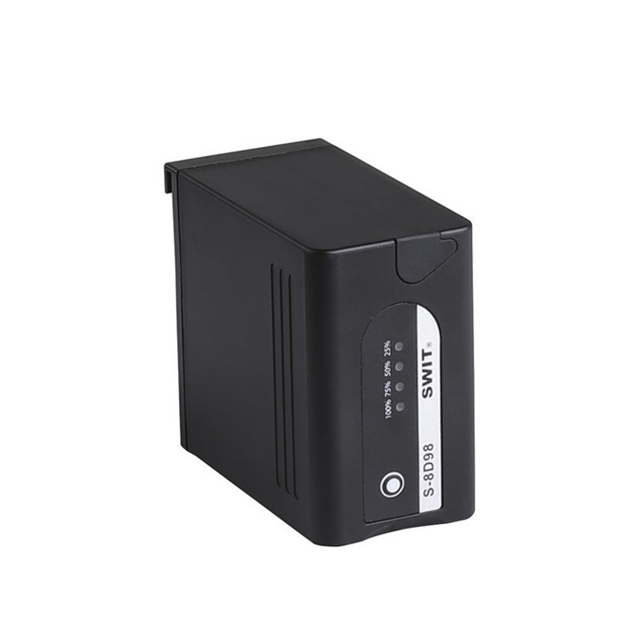 The S-8D98 can be charged on Panasonic original charger DE-A88, and SWIT also provides the Dual channel charger S-3602D or 4-ch charger LC-D421 for S-8D98, will take about 6 hours to charge from empty to 100%.