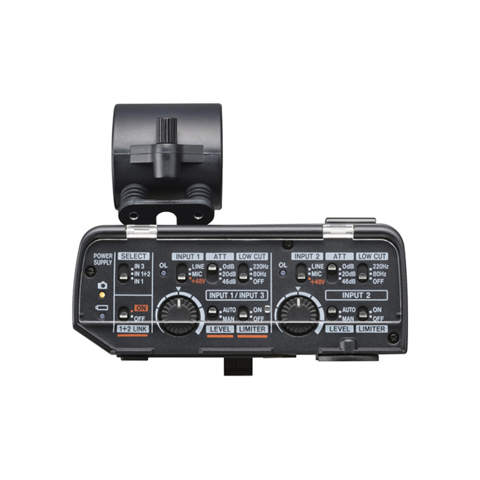 The CA-XLR2d is so flexible that you can use it with the microphones and gear you need for your particular film session. The top-mount cold shoe, for example, is resistant to vibrations, noise-friendly and can hold your favourite mic or a wireless receiver or transmitter. Two XLR/TRS input terminals and one 3.5-mm stereo mini input are available for virtually any dynamic or condenser handheld, shotgun, lavalier or other microphone.