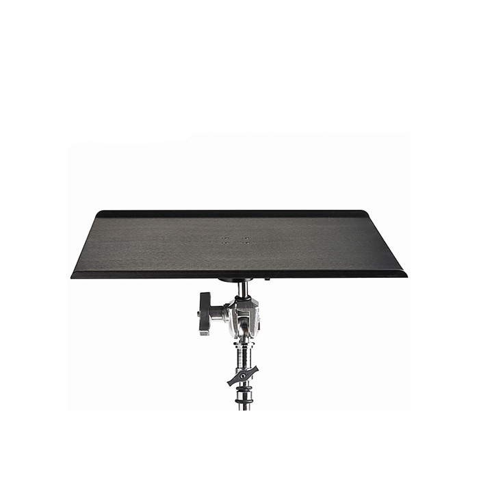 The Aero Series features the LAJO-4 ProBracket. State of the art design and efficiency for integrated mounting on any 1/4"20 tripod head, 3/8" tripod mount, 5/8" stud studio stand or Arca style mounting attachment. Mounts to any of these stands and supports in just a few seconds, no adapters needed. Includes a custom, high quality storage case to protect your table when not in use.