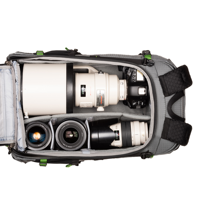 Med et rumindhold på 45 l er der masser af plads til både kameraudstyr og vandreudstyr, som fx et reb, en isøkse, et snowboard, ski, laptop, tablet og selvfølgelig et trebenet stativ.