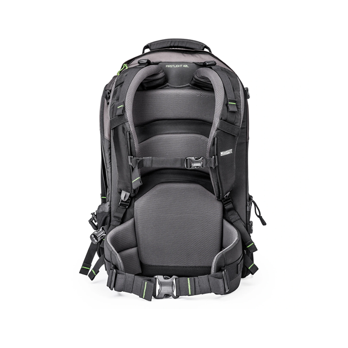 The FirstLight’s contoured, 11-point adjustable torso harness fits most men and women. The pack also offers ballistic nylon bottoms for durability and has long lens capacity with extra room for your laptop and personal gear.