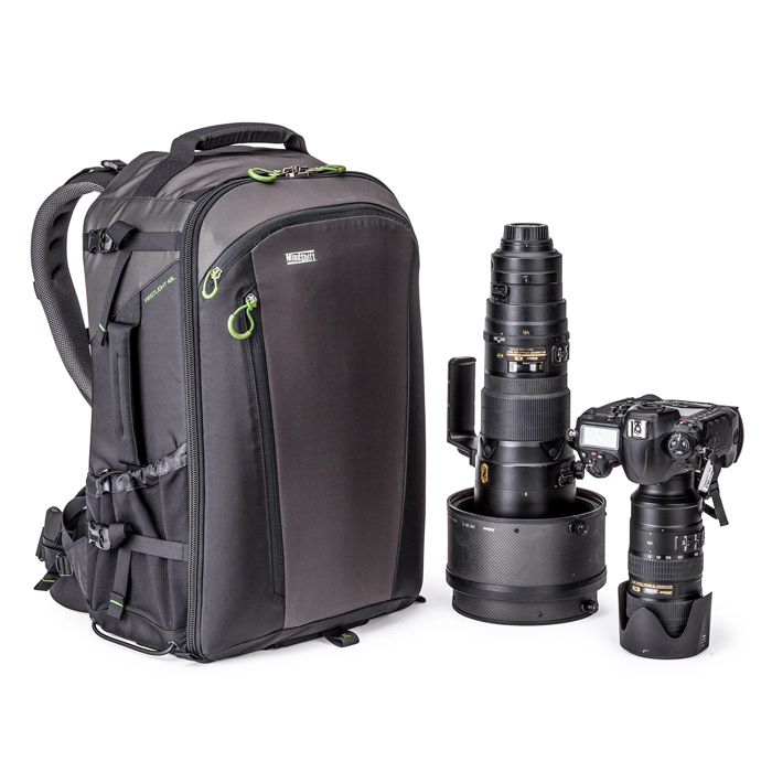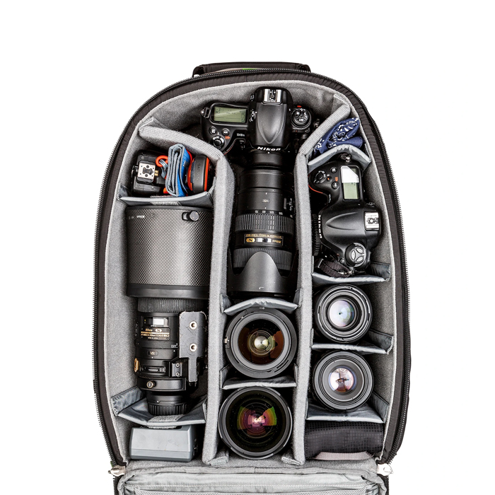 Holds 2 gripped DSLRs with 6–8 standard zoom lenses and 1–2 flashes. Maximum lens size: 600mm f/4 lens detached or a 500mm f/4 attached.
