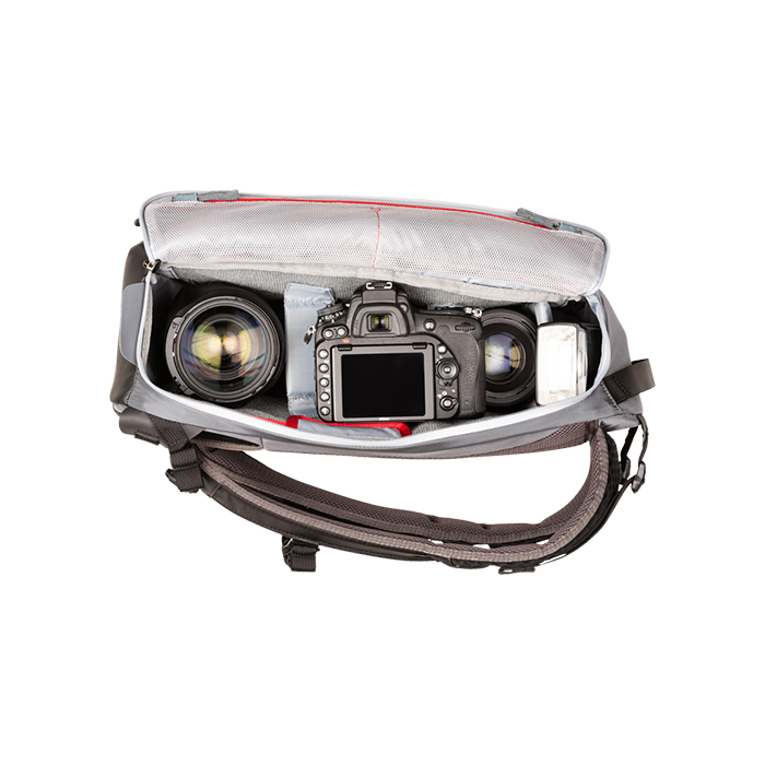 • Fits an ungripped DSLR or Mirrorless body, 3–5 lenses including a 70–200mm f/2.8 detached and up to a 13” laptop.