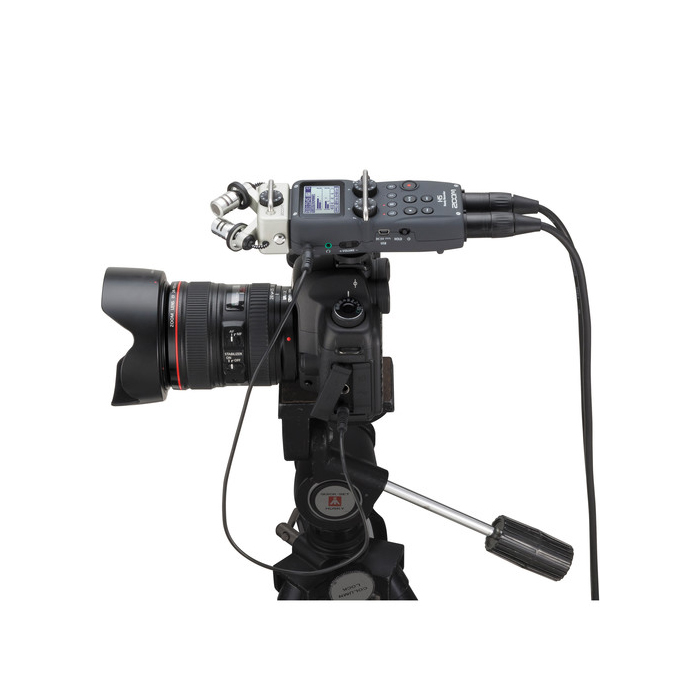 A Line Out with adjustable volume allows you to send audio from the H5 to the input of a camera or other device without the need for an attenuator cable. In addition, there's a separate headphone output with a dedicated volume control. You can use both outputs simultaneously to route audio to your DSLR while monitoring with headphones.
